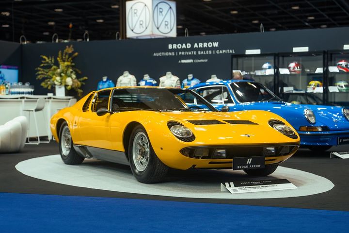 - The 1971 Lamborghini Miura P400 S sold in Broad Arrow’s Global Icons Online Auction series, on display on the Broad Arrow stand at Retromobile 2026.