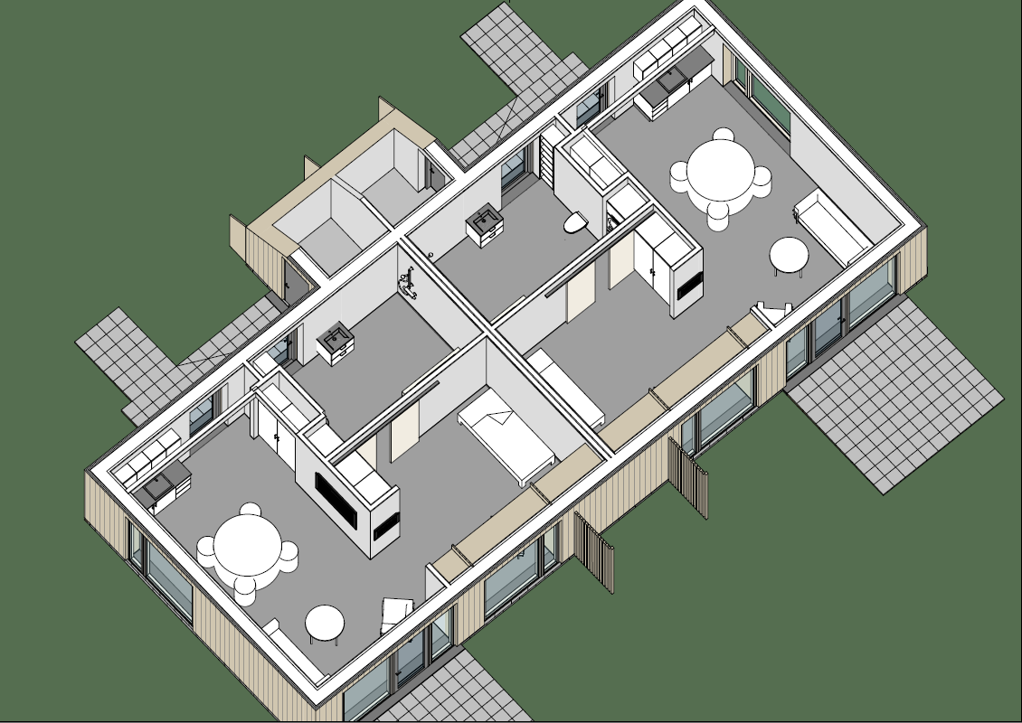 Projektet omfatter opførelsen af 10 nye almene boliger, renovering af tre eksisterende boliger samt etablering af nye fællesfaciliteter og aktivitetsrum. De nye boliger opføres som dobbelthuse med grønne afskærmninger og terrasser, der trækker naturen helt ind til beboerne. Derudover ombygges et eksisterende træhus til medarbejderfaciliteter og fælleshus for borgerne, så der skabes plads til flere aktiviteter og socialt samvær i mindre grupper.