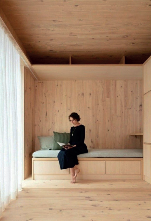 Boligens badeværelse disponeres med god plads. Ind mod soveområdet giver en bred åbning (skydedør)  god adgang og luft omkring arbejdspladsen ved nichen  med vaskesøjlen. I facaden er terrassedøren med matteret glas en fl ugtvej for personalet samtidig med, at der trækkes lys ind i badeværelset.