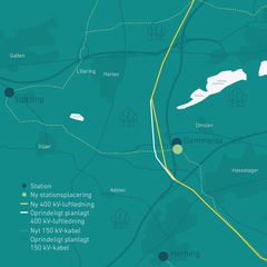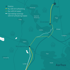 Kort over Nyt elnet Aarhus-Aabneraa