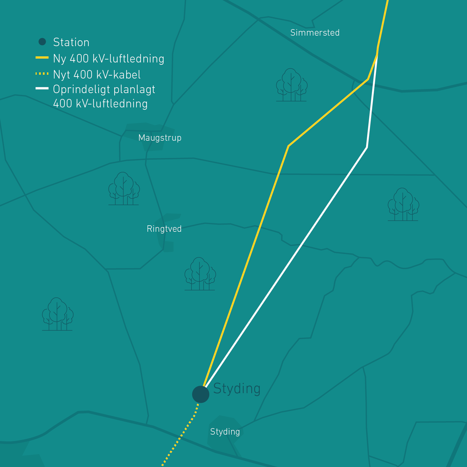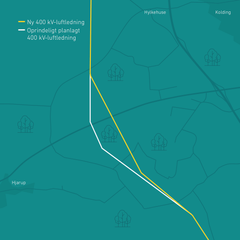 Ændringen af luftledningen betyder en ændring af linjeføringen af kablet hen til overgangsstationen.