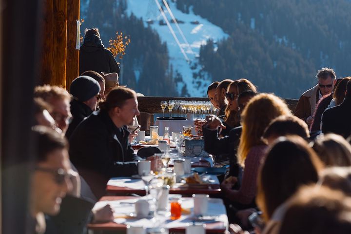Participants networking during the Future Investments Circle brunch on the Schatzalp Panorama Restaurant terrace, overlooking Davos. Informal exchange and off-stage dialogue formed a central part of the event’s design, encouraging meaningful connections alongside the formal program.
