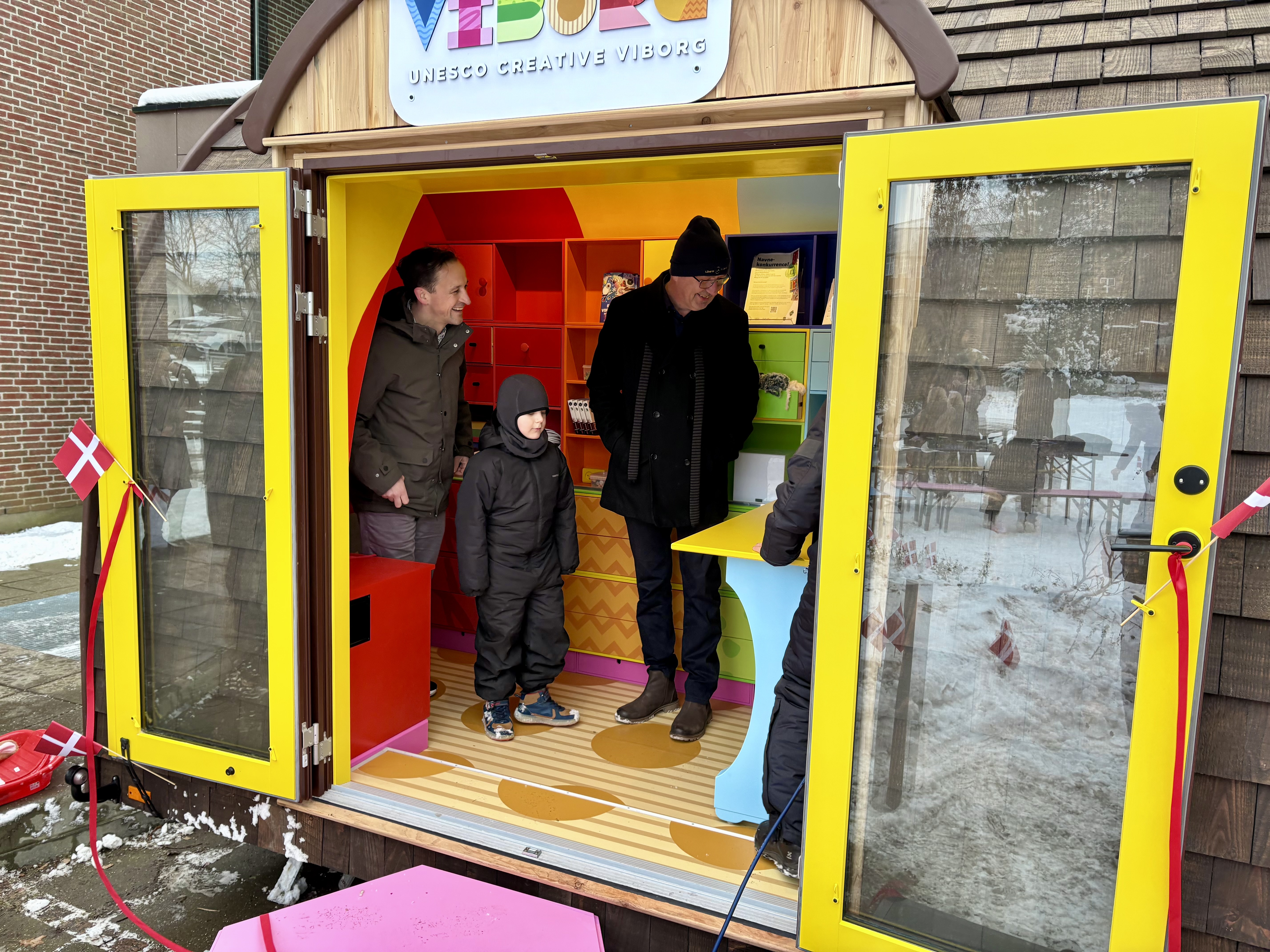 Efter dagens indvielse ved Skals Bibliotek er Viborg Kommunes nye mobile aktivitetshus klar til at bringe børnekultur, klimaaktiviteter og kreativ leg ud til både byer og landsbyer i hele kommunen.