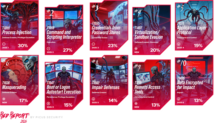 The Red Report™ 2026 is based on year-long research conducted by Picus Labs, with adversarial behaviors validated through real-world attack simulations and mapped to the MITRE ATT&CK framework. The analysis focuses on the techniques attackers use most frequently to maintain access and avoid detection once inside an organization.