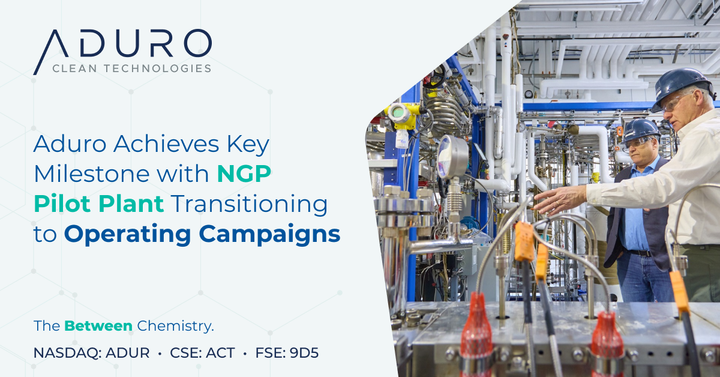 Aduro Clean Technologies Achieves Key Milestone with NGP Pilot Plant Transitioning to Operating Campaigns