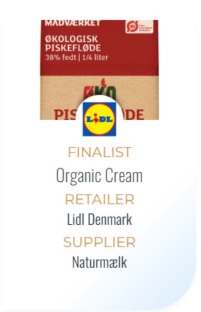 “Vores produkt kommer fra lokale, økologiske danske landmænd med 3 hjerter i dyrevelfærdsmærket, den højeste standard for dyrevelfærd. Vi er glade for nomineringen og ser den som et udtryk for et godt og langvarigt samarbejde mellem Naturmælk og Lidl.”
