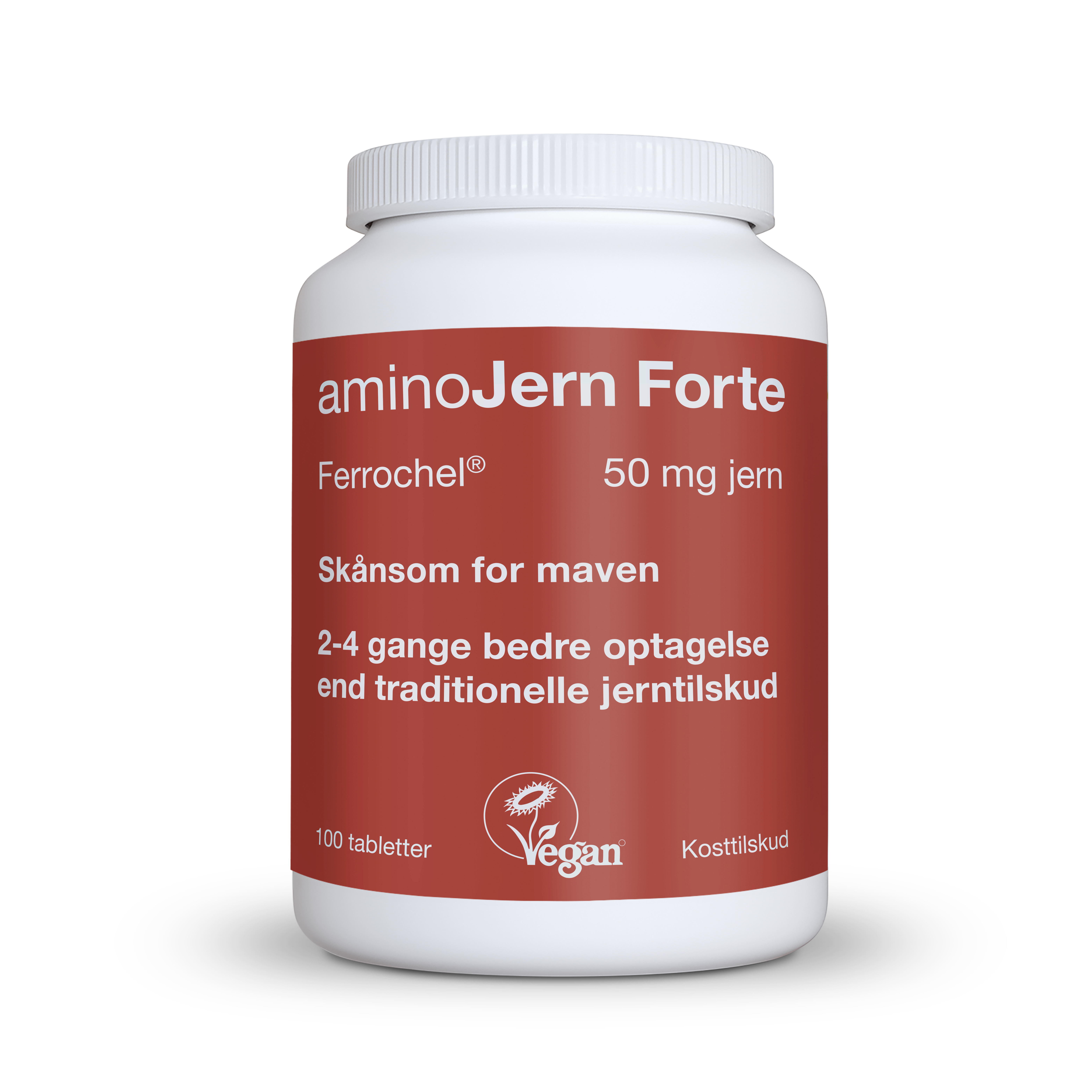 aminoJern er et effektivt og skånsomt jerntilskud som alle kan bruge. 50 mg aminoJern svarer til 100-200 mg af et jernsalt som for eksempel ferrofumarat, ferrosulfat eller ferroglukonat.