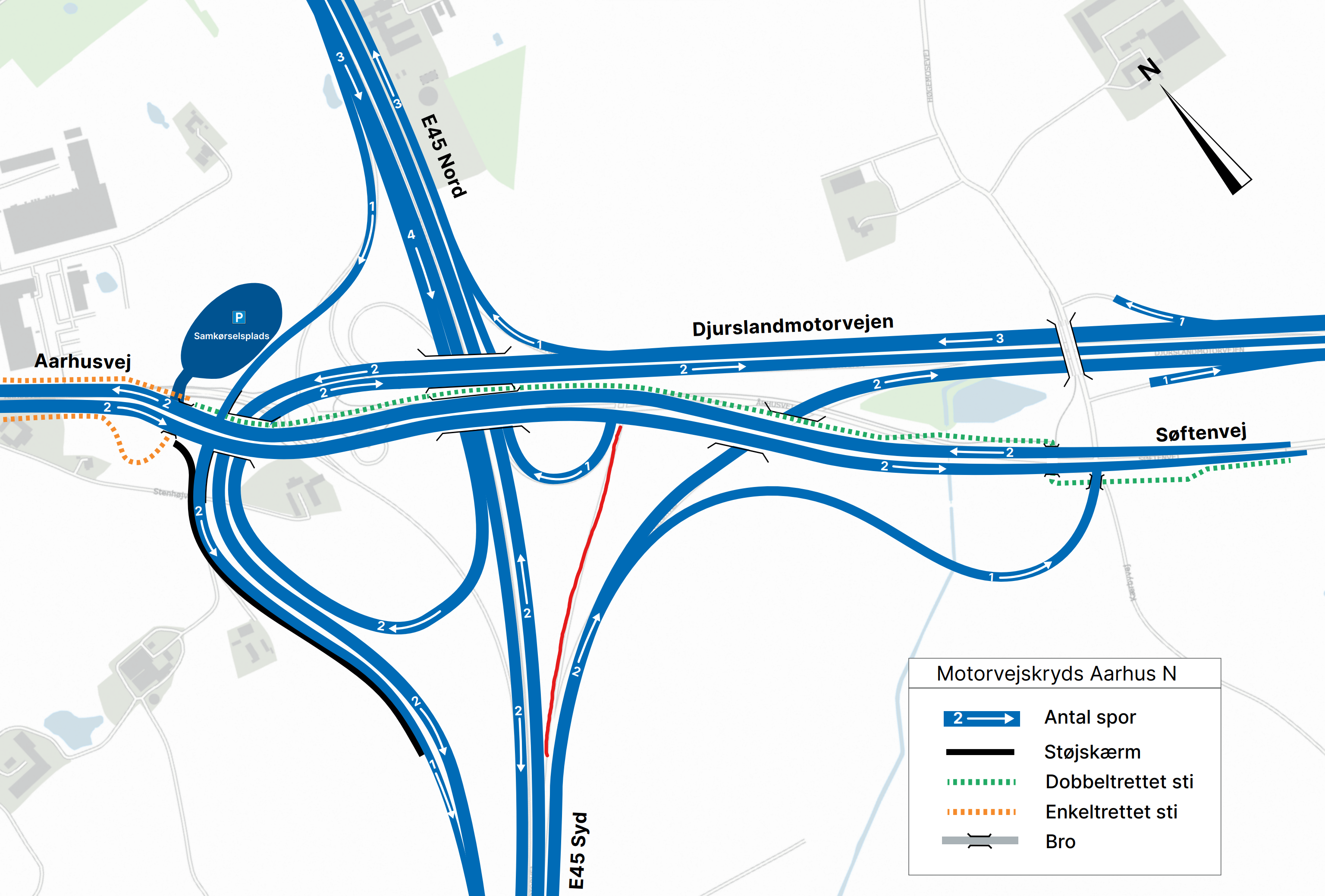 Nye veje ved E45 Aarhus Nord – Trafikanter skal køre modsat det de plejer