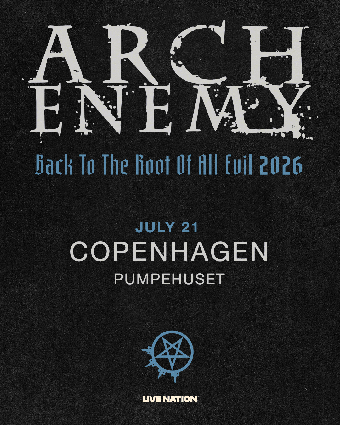 Metallegenderne Arch Enemy vender tilbage til de små, underjordiske scener med en eksklusiv række koncerter i 2026, herunder Pumpehuset den 21. juli. Det bliver intimt, kompromisløst og intenst – helt tæt på bandets rå nerve og eksplosive energi!