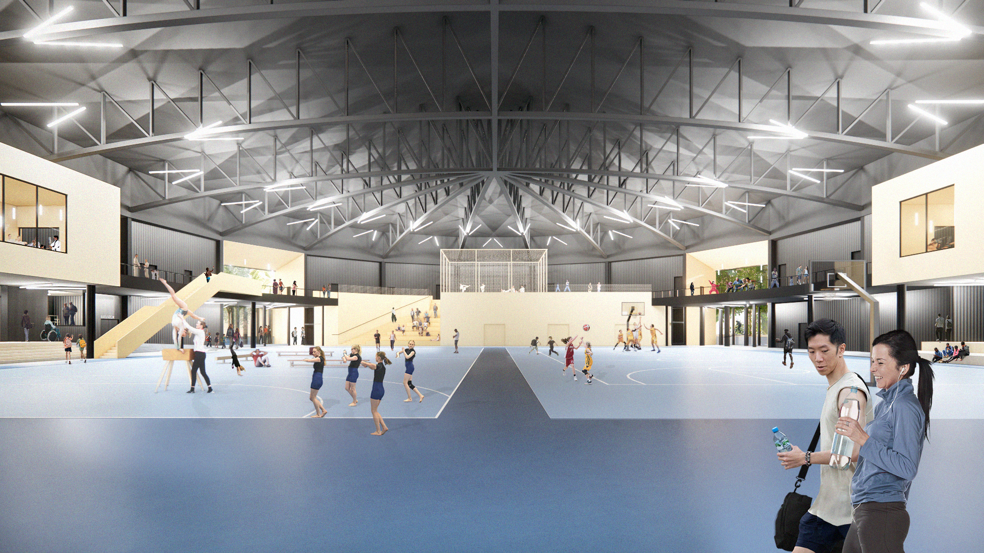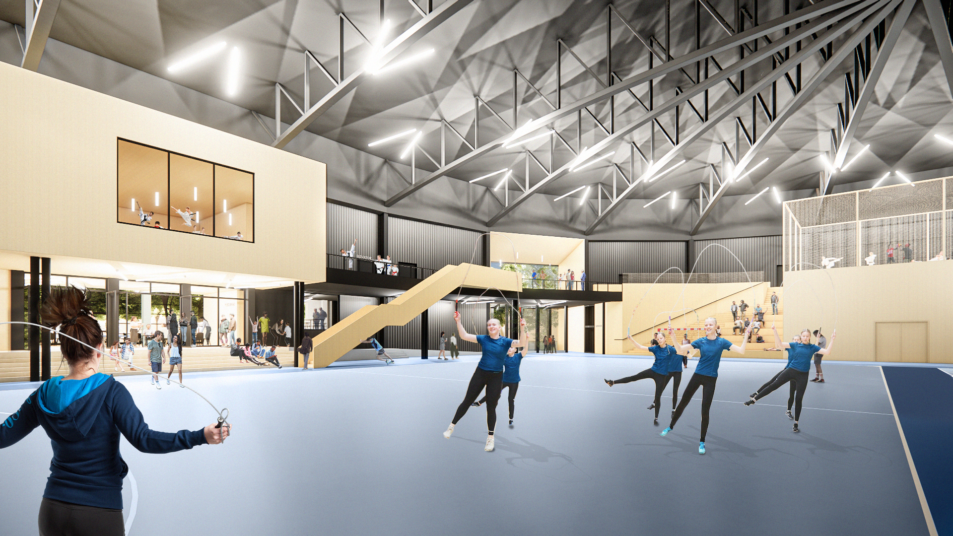 • Der etableres to multifunktionelle idrætshalflader til f.eks. basket, badminton og gymnastik.