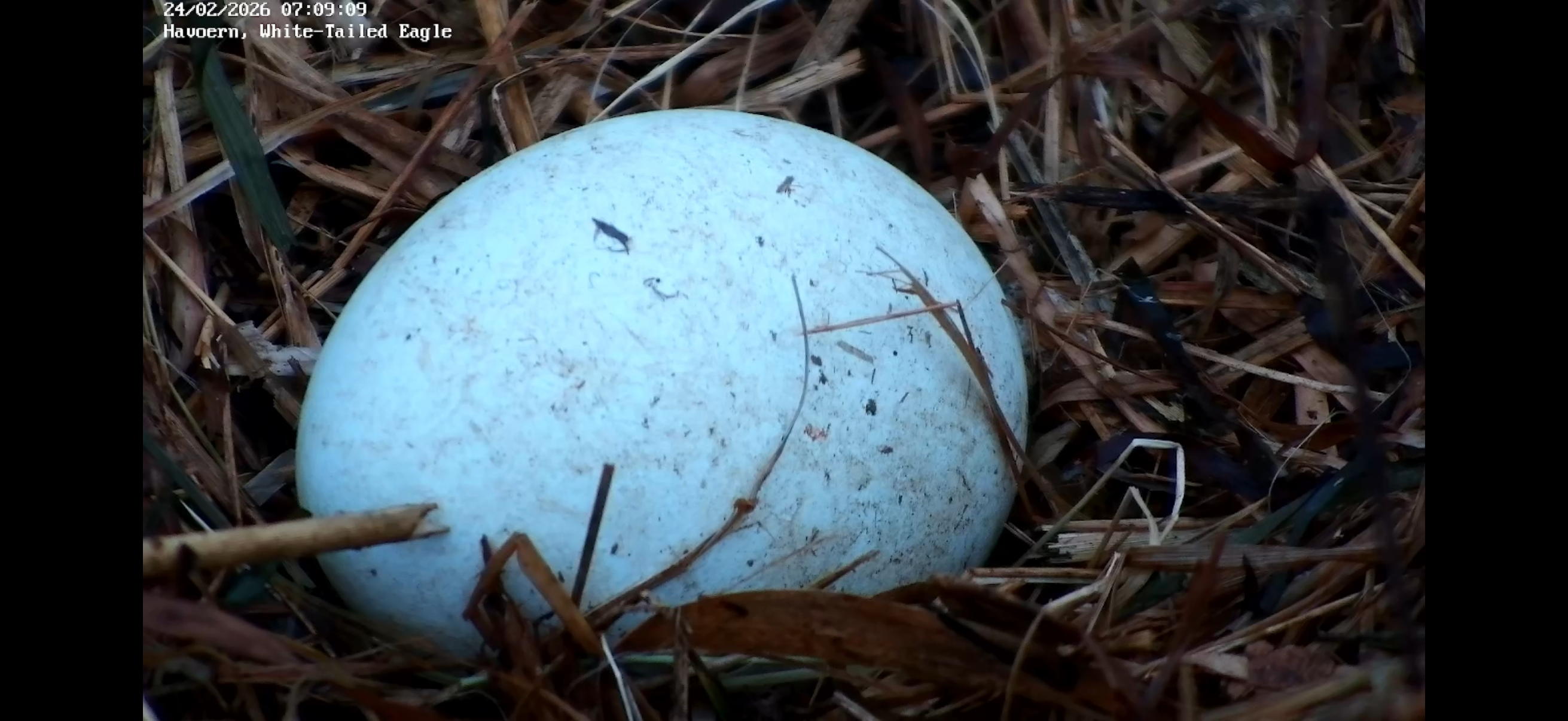Da frosten endelig slap sit tag i Danmark, var det tilsyneladende et signal til havørnehunnen i DOF BirdLifes direkte ØrneTV om at lægge æg. Mandag 23. februar klokken 14.39 kom et æg til syne i reden. Forude venter måske flere æg med rugning og familieliv, om alt går vel.