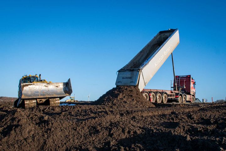 En del af overskudsjorden til projektet her kommer fra Blue Phoenix’ plads ved Aalborg Havn, men her var slet ikke de mængder på lager, som skal bruges til projektet.
