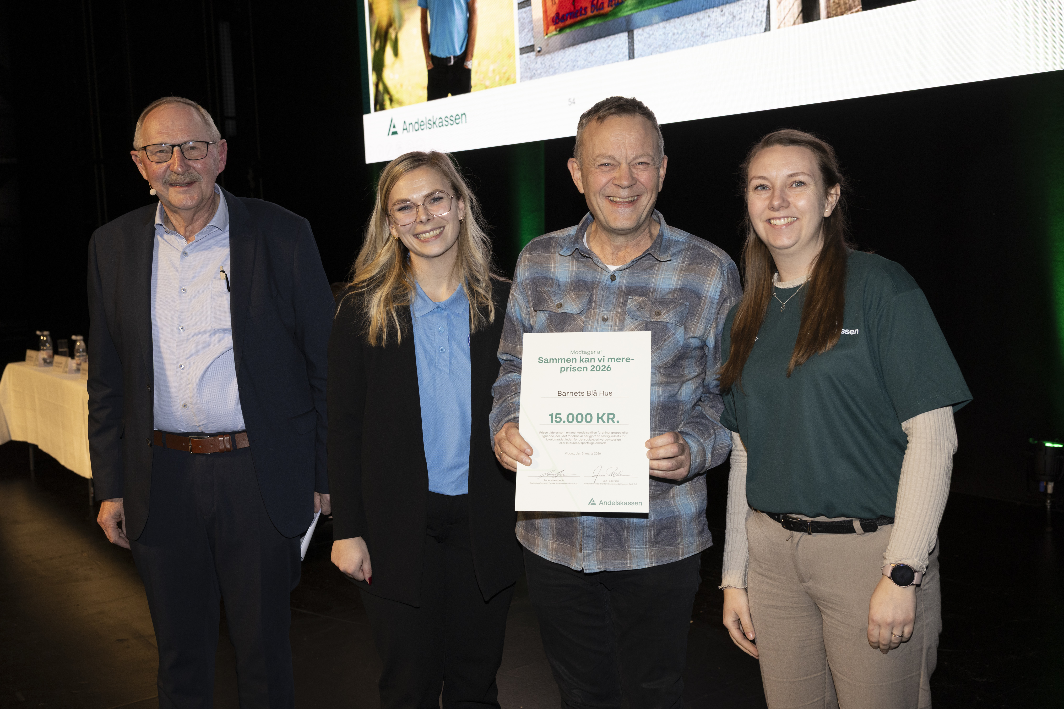 På Andelskassens aktionærmøde 3. marts 2026 i Tinghallen i Viborg uddelte banken traditionen tro Andelskasseprisen og tre ”Sammen kan vi mere-priser”. Priserne går til små og store initiativer, der skaber glæde, udvikling og sammenhold, og som gør en forskel i lokalsamfundet.