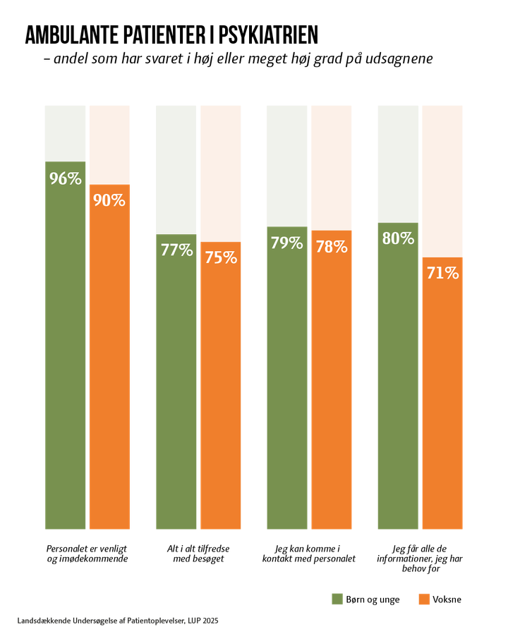 Patienter og pårørende har i den store, årlige tilfredshedsmåling svaret på en stribe spørgsmål om deres møde med psykiatrien. Tilfredsheden matcher i store træk den tilsvarende måling året før.