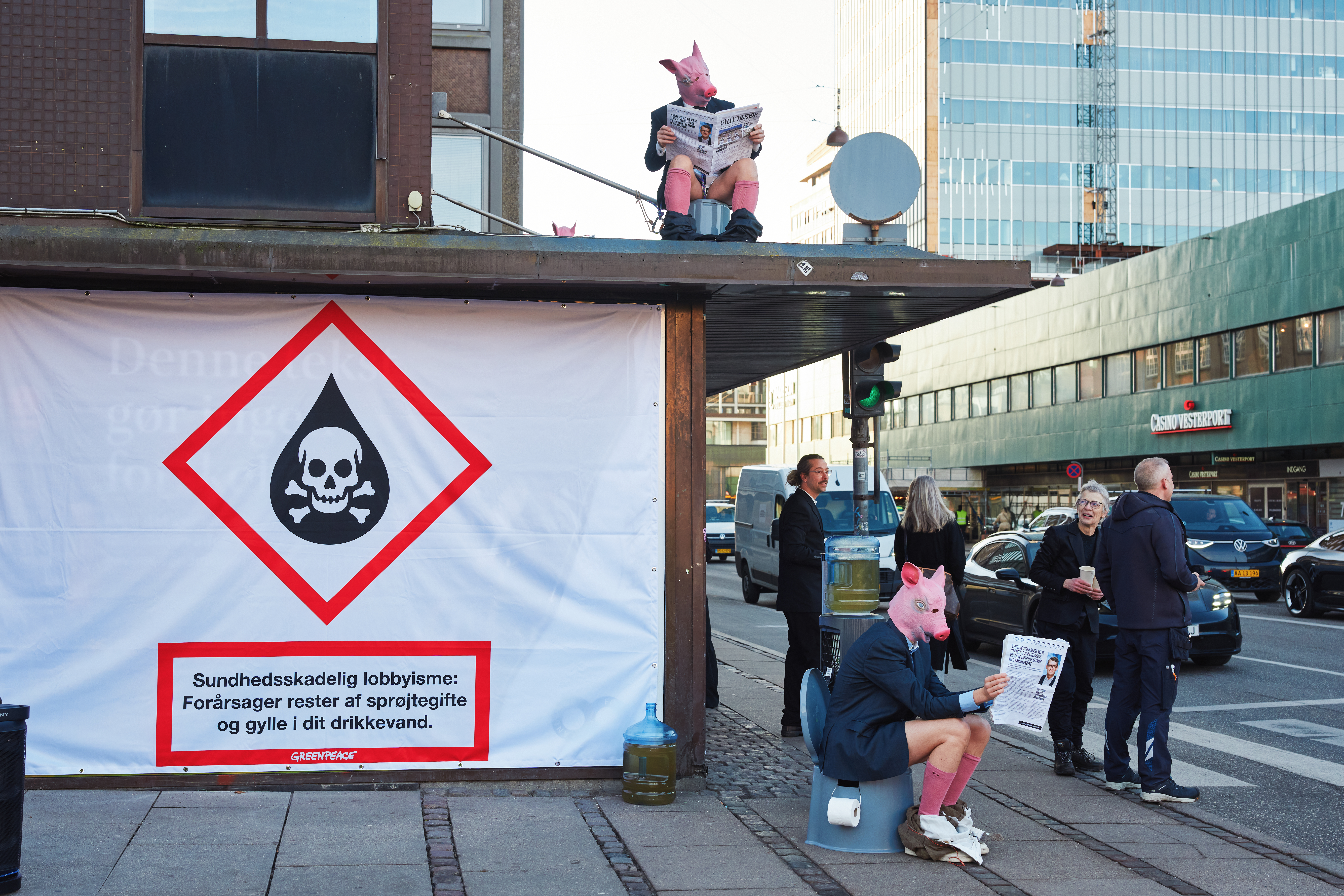 »Sundhedsskadelig lobbyisme«: Svineaktivister fra Greenpeace i aktion for det danske drikkevand