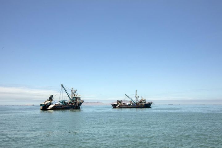 - Industrial anchovy fishing vessels anchored in Callao, Peru's chief seaport