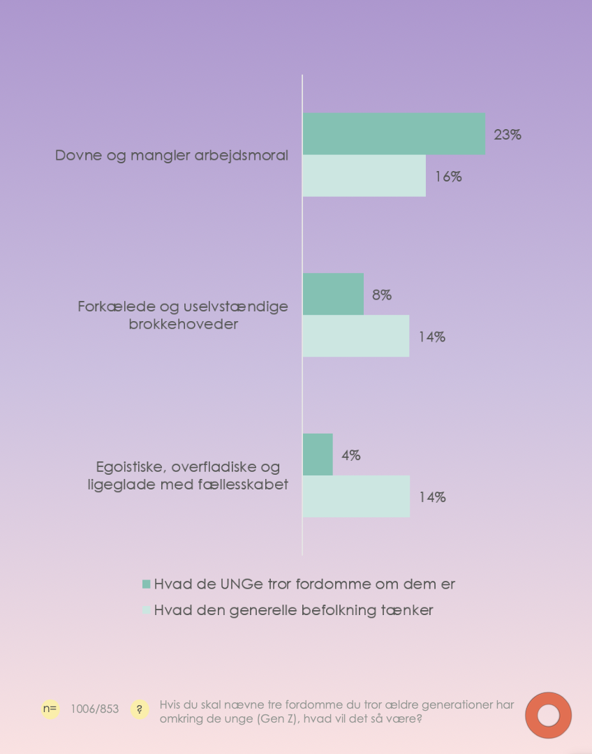Udover at interview de unge selv, har Opinion også interviewet knap 900 fra den generelle befolkning. Således konkluderer analysen i hvilken grad, de unge adskiller sig fra den generelle befolkning i spørgsmål om fx trivsel, værdier og arbejdsliv. Og på den måde afliver analysen altså en del af de fordomme, fortællinger og myter, der eksisterer om unge i dag.