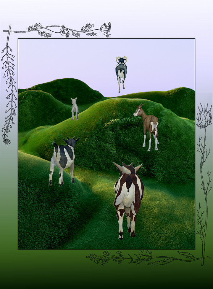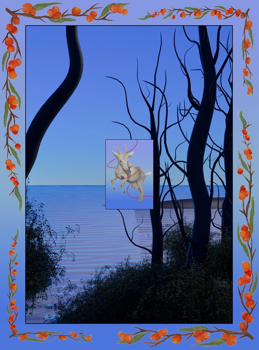 I fem digitalt vævede gobeliner sammensættes en række elementer, der på collagelignende vis peger på historiske syndebukkefortællinger. Blandt andet optræder et landskab fra Sprogø – hvor en anstalt for såkaldt ’moralsk defekte’ kvinder eksisterede fra 1923 til 1961 – samt ornamentale motiver af planter som tidsler, mælkebøtter og vild fennikel. Planterne er traditionelt blevet betragtet som uønsket ukrudt, men har samtidig haft en plads i folkemedicin og i heksekunst, hvor de er blevet forbundet med helende og beskyttende egenskaber. I Holtegaards digitale univers flettes disse historiske spor sammen med fabulerende fremtidsforestillinger og danner et personligt, poetisk billedrum.