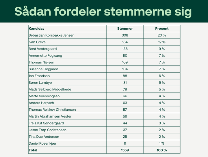 De to kandidater fik henholdsvis 308 og 184 stemmer. I alt har 1559 forbrugere stemt til valget, hvilket er mere end en fordobling sammenlignet med seneste valg i 2022, hvor 655 stemte.