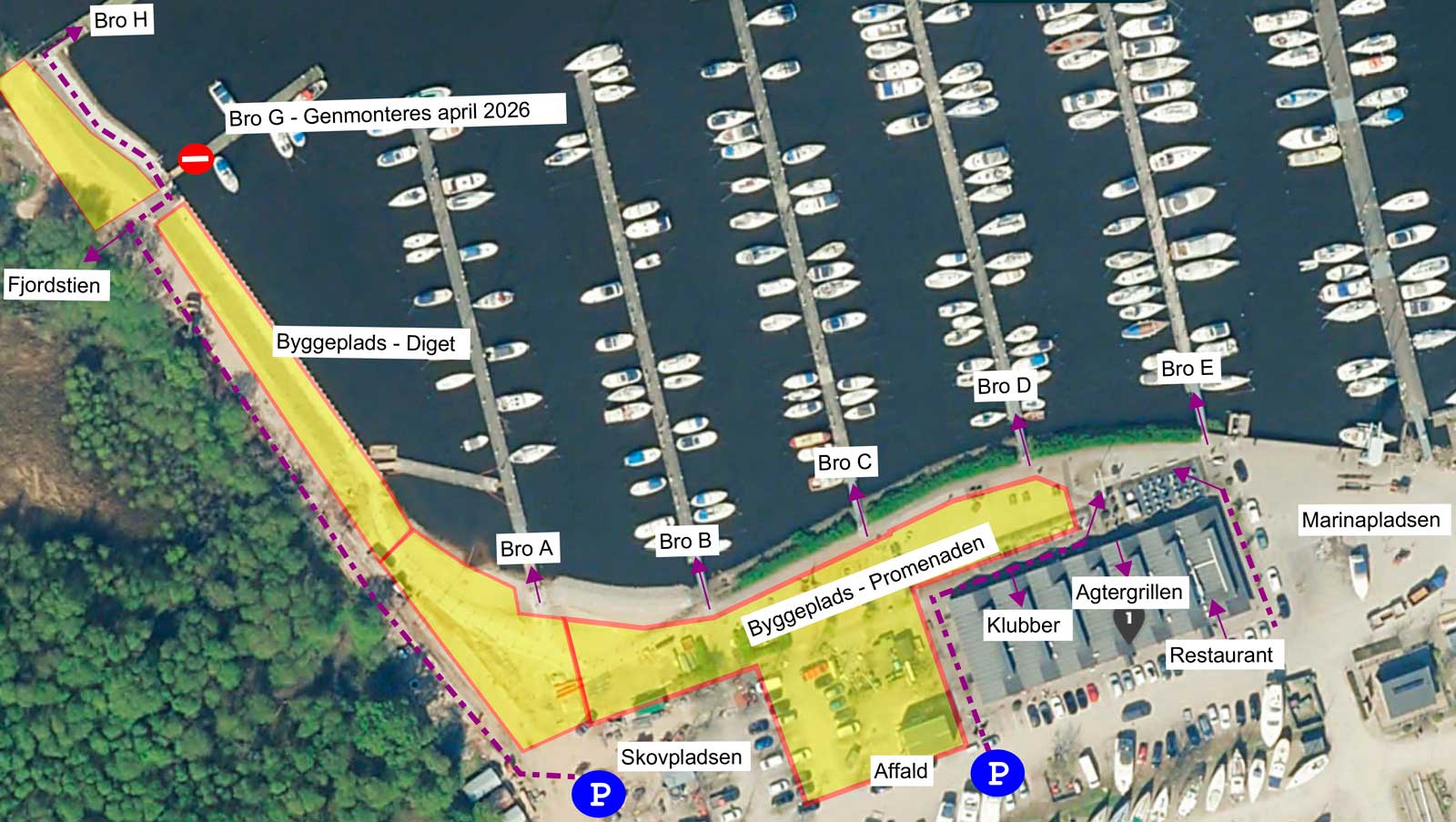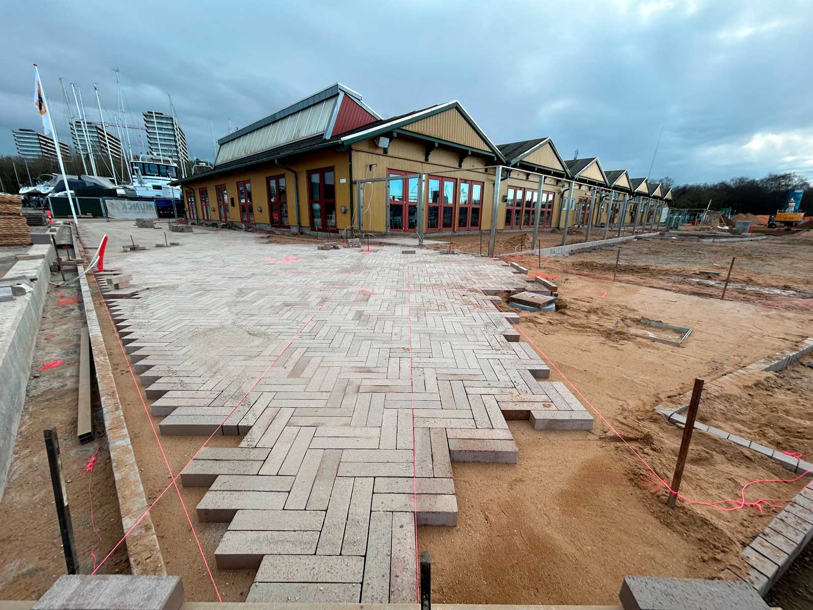 Efter påske kommer der belægning på arealet foran de forskellige sejlklubber, så medlemmerne forsat har fuld adgang til faciliteterne og terrasserne med udsigt ud over vandet.