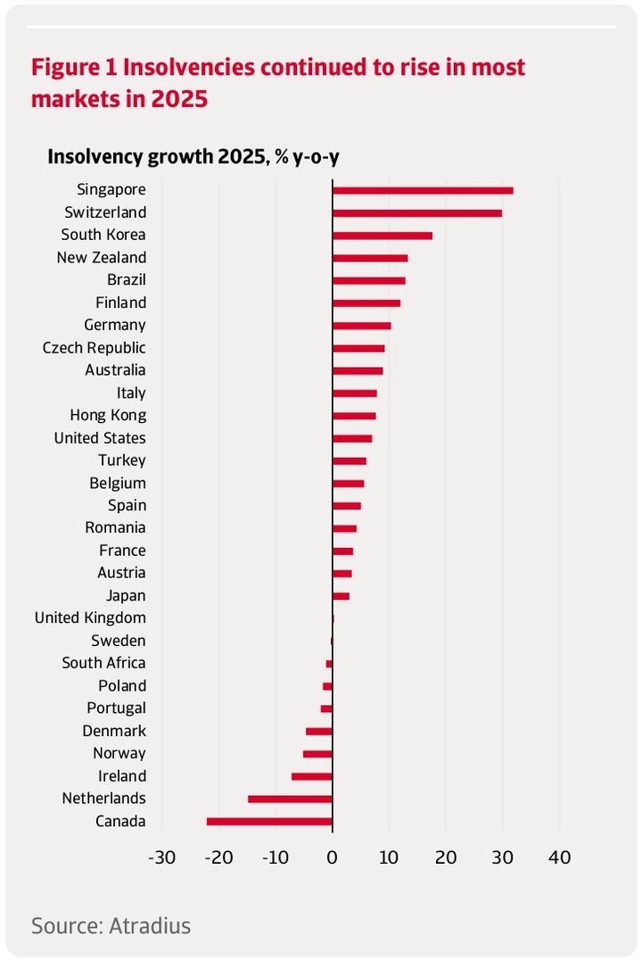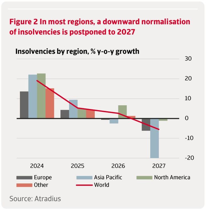 Atradius forventer, at antallet af konkurser globalt vil stige med 3 procent i 2026 sammenlignet med 2025, også selv hvis situationen omkring Hormuz-strædet gradvist normaliseres i løbet af de kommende måneder.