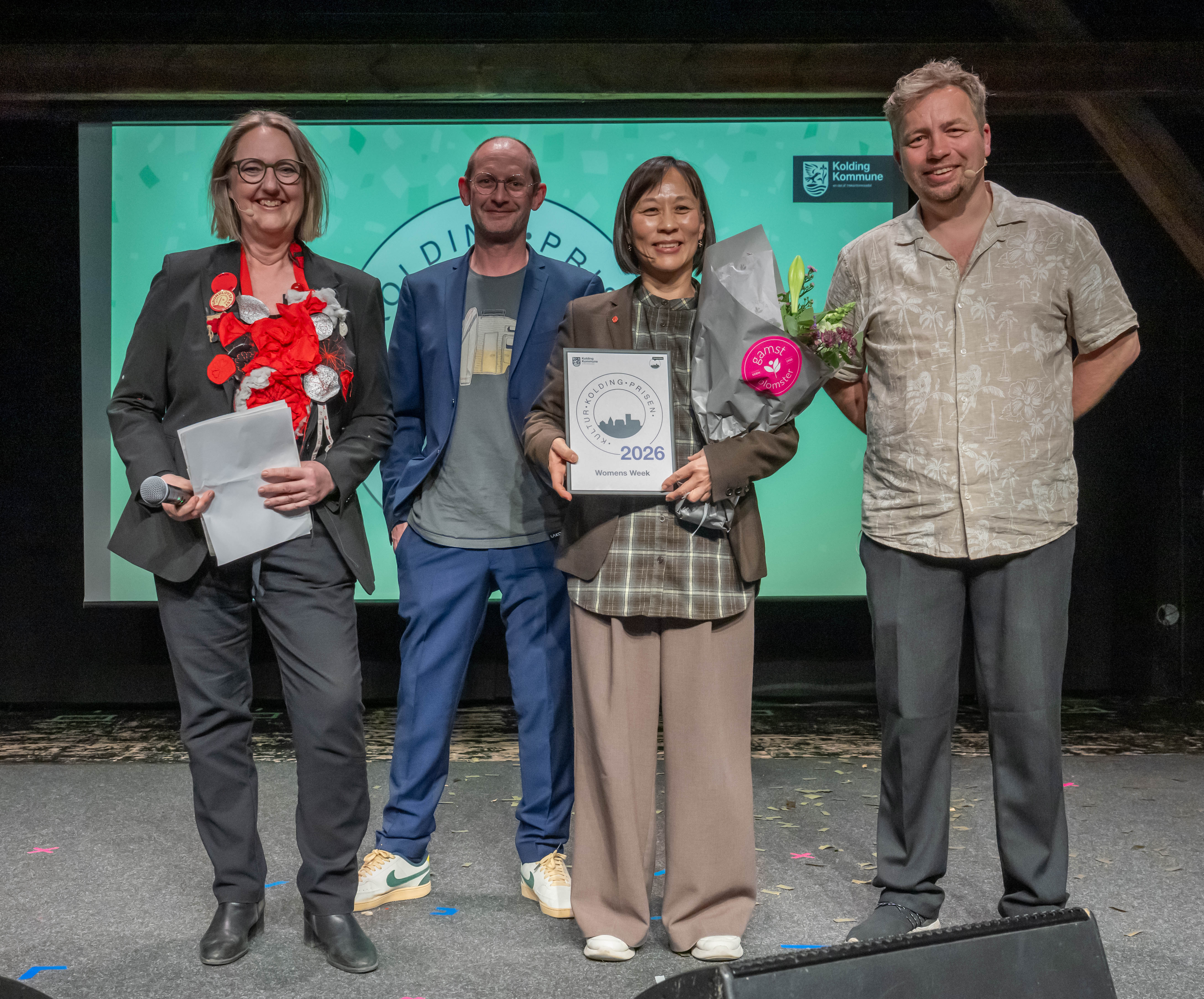 Aftenens mest spændingsfyldte øjeblik var uddelingen af KulturKolding-prisen, som blev afgjort via sms-afstemning blandt borgerne. Vinderen blev Women’s Week som er et lokalt udviklet og stadig voksende fællesevent for flere aktører. Women’s Week tilbyder spændende talks, inspirerende workshops og engagerende events som arbejder for at fremme en nysgerrig og nuanceret debat om feminisme og ligestilling i vores samfund.