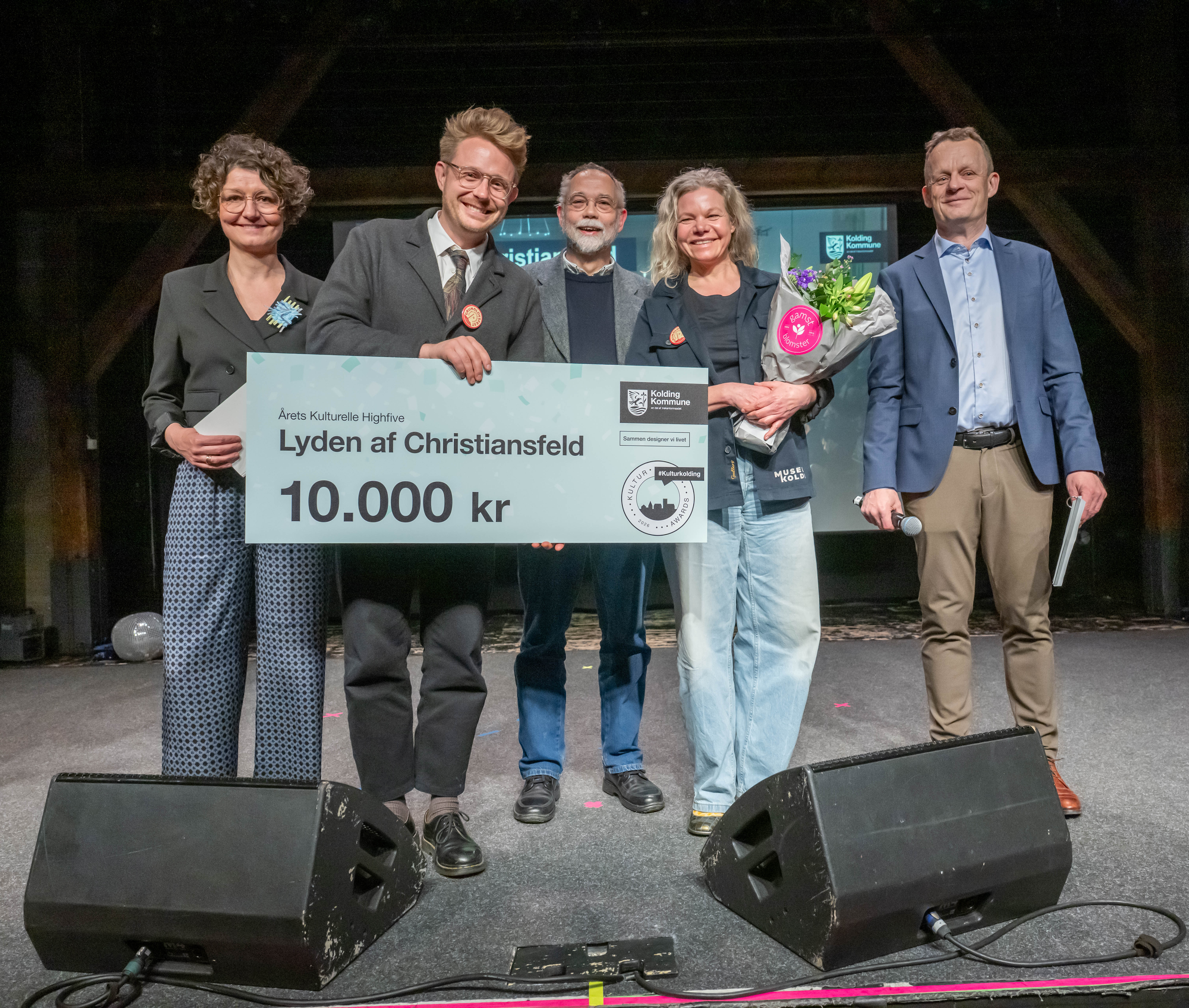 Der var både spænding, begejstring og rørende øjeblikke tirsdag aften, da 250 kulturinteresserede var samlet på Godset i Kolding til uddeling af Kolding Kommunes kulturpriser. Og der var spænding til det sidste om hvem, de skulle løbe med de fire priser: