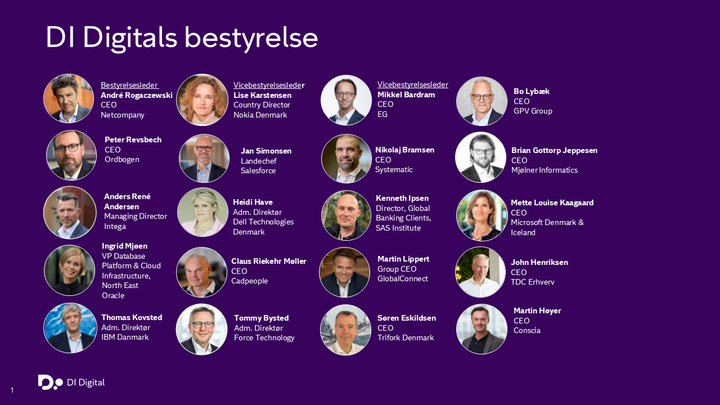 Den nye bestyrelse genvalgte André Rogaczewski, CEO Netcompany, som bestyrelsesleder. Lise Karstensen, Country Director i Nokia Danmark, og Mikkel Bardram, CEO i EG, blev genvalgt som vicebestyrelsesledere.