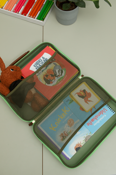 Knirkekuffertens indhold kan bruges aktivt i undervisningen til læring, leg og fordybelse. I kufferten finder man: seks børnebøger om Knirke, Knirkebamse, 24 følelseskort og et hæfte med viden om børn og sorg.