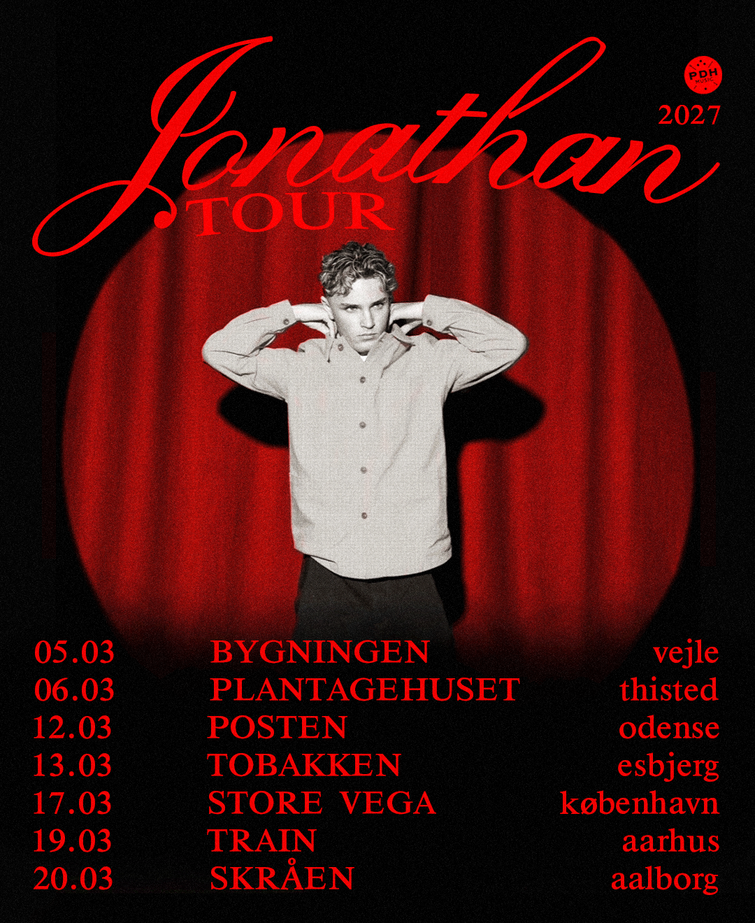 Nu annoncerer JONATHAN også sin første tour rundt i Danmark i foråret 2027 som bringer ham til 7 byer.