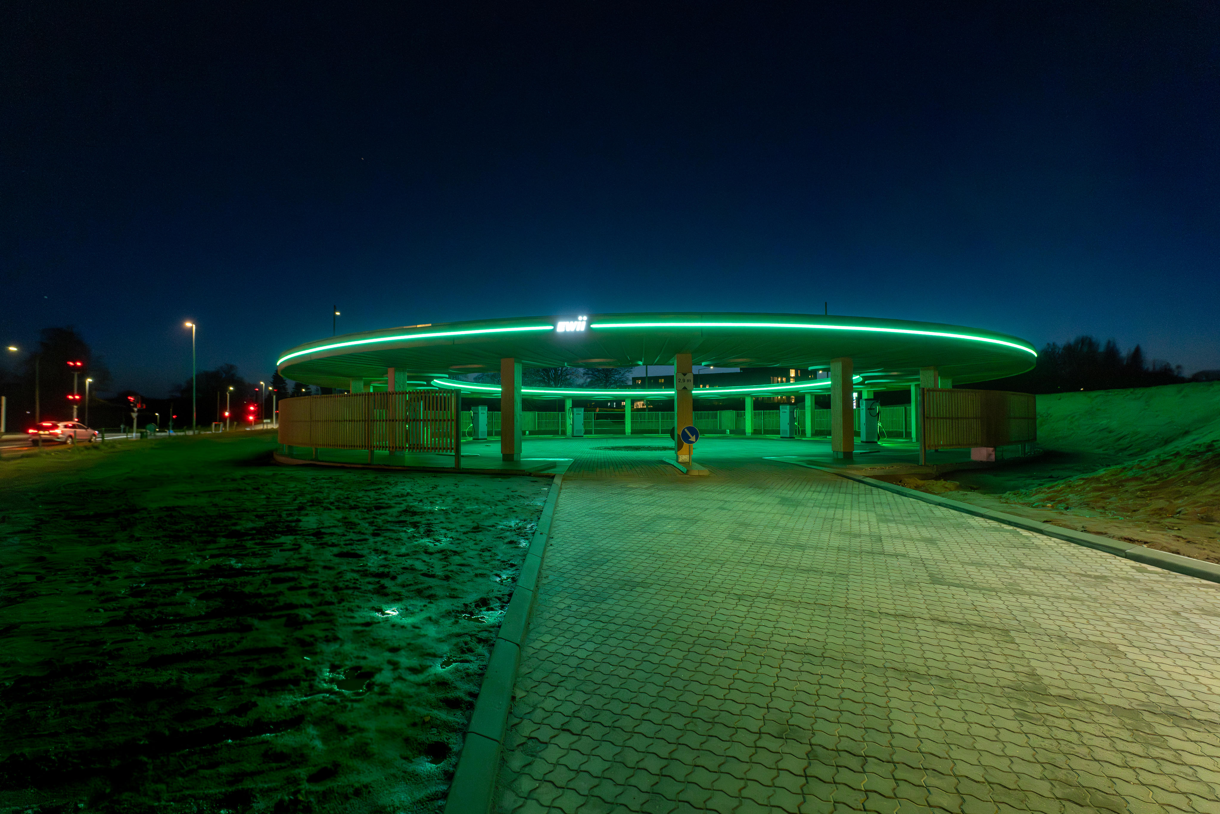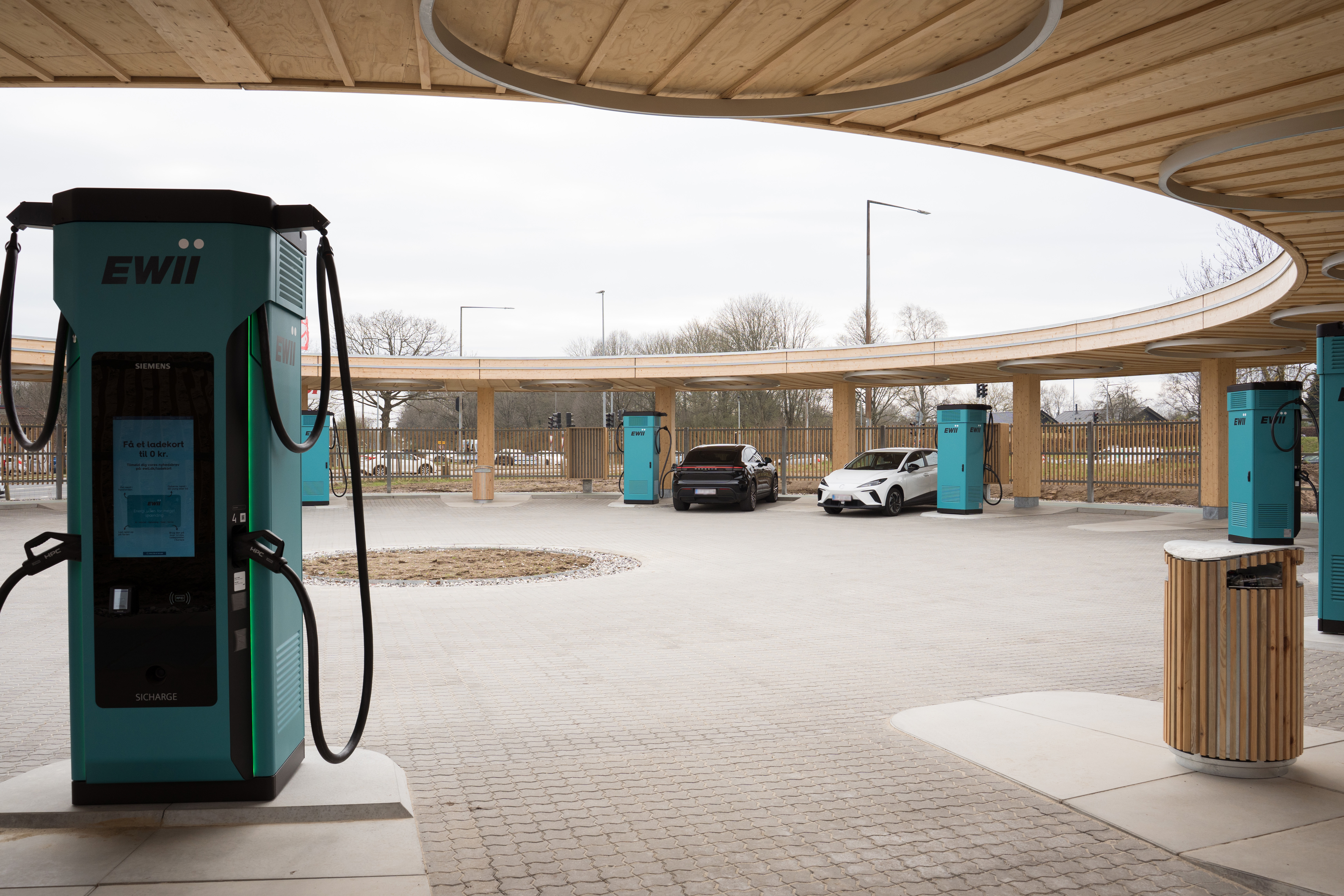 Med cirkelformet design, 400 kW-ladere og en placering tæt på indfaldsvej er EWIIs nye ladestation både opsigtsvækkende og lettilgængelig for elbilister, der har behov for lynhurtig opladning. Den 29. april fejrer EWII åbningen af ladestationen med tilbud på opladning.