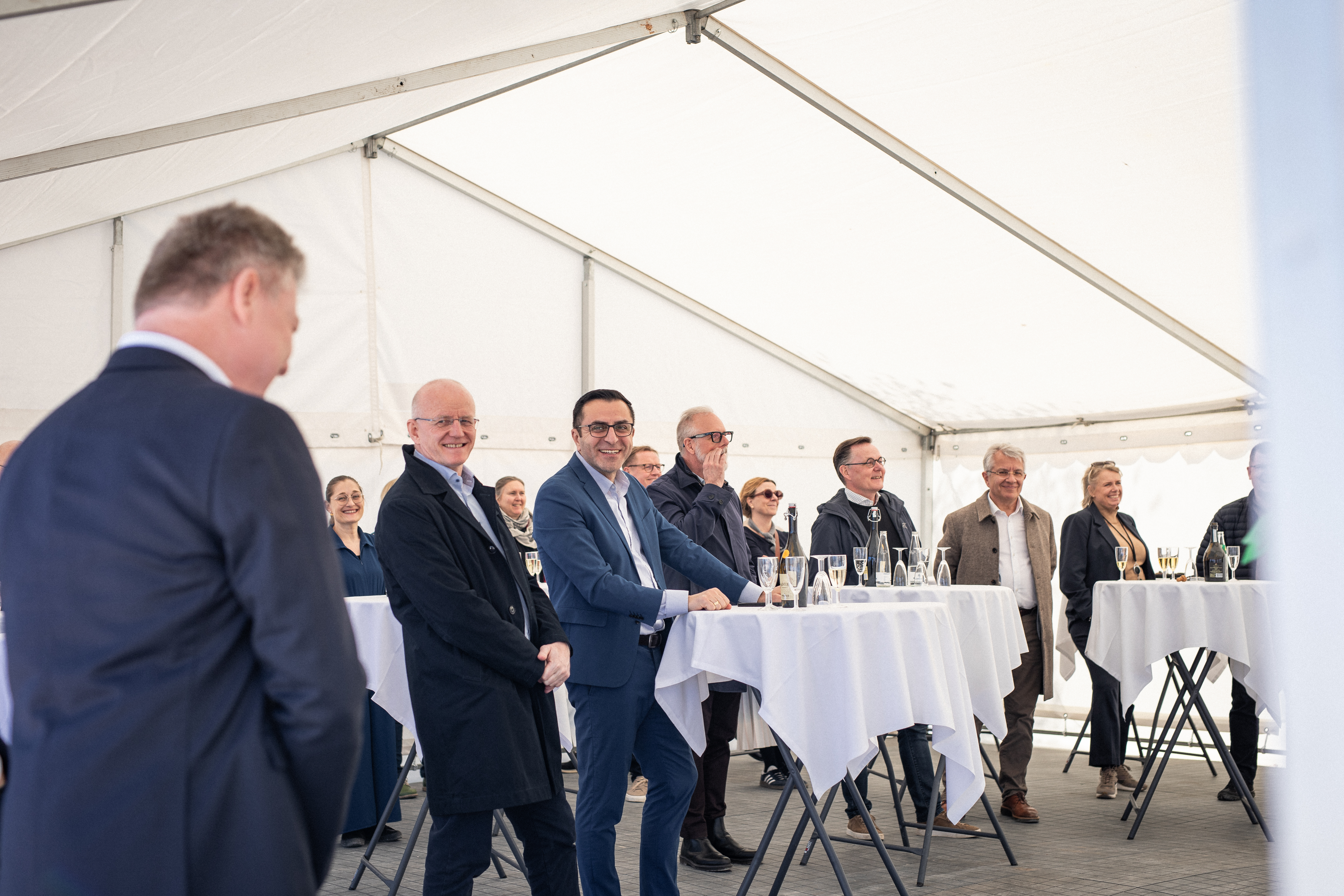 Tre politikere deltog i fejringen af Svanemøllen Skybrudstunnel. Fra venstre; Morten Melchiors fra Klima-, Miljø- og Teknikudvalget i Københavns Kommune, borgmester Michael Fenger fra Gentofte og borgmester Serdal Benli fra Gladsaxe.