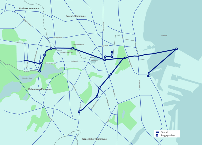 Forud for det storstilede tunnelarbejde er der taget forskud på arbejdet på de to første byggepladser, der er blevet anlagt i forbindelse med tunnelprojektet. I alt skal der etableres 16 byggepladser på den ti kilometer lange tunnelrute, der løber gennem det sydlige af Gladsaxe og Gentofte kommuner samt i Københavns Kommune fra Lygten til Nordhavn.