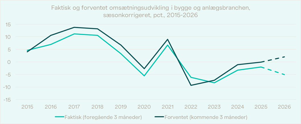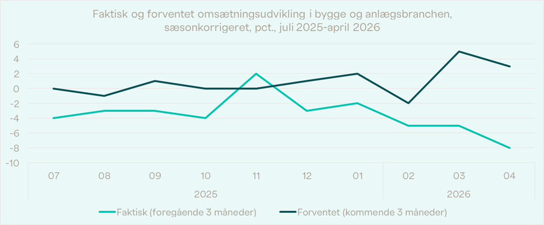Udviklingen i bygge og anlæg er ofte et tidligt signal om, hvordan dansk økonomi generelt har det. Når omsætningen falder her, er det tit et tegn på, at både virksomheder og private begynder at bremse.