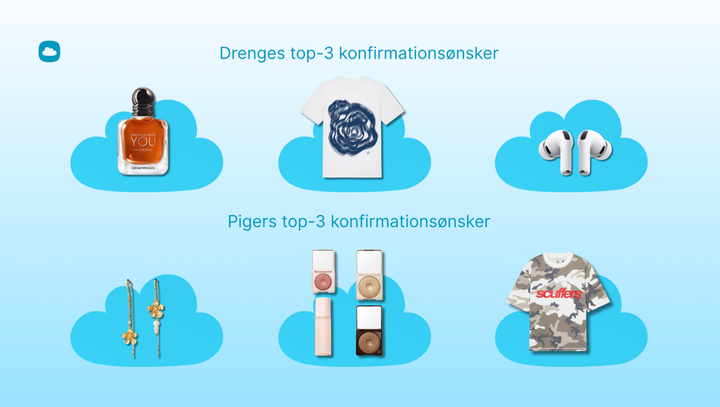 Hvert år deler danskerne millioner af gaveønsker på Ønskeskyen - og navnlig i konfirmationssæsonen bliver det tydeligt, hvad særligt de unge faktisk drømmer om. Ønskelisteplatformen, der har flere end 18 mio. registrerede brugere globalt, og over 3 mio. i Danmark alene, har således igen i år undersøgt sæsonens konfirmationsønsker: En screening af i alt 335.684 konfirmationsønsker oprettet inden for de seneste 90 dage giver et interessant øjebliksbillede af, hvad årets konfirmander går rundt og drømmer om - og en kærkommen håndsrækning til alle de gæster, der endnu ikke har fundet den rigtige gave, eller som ikke gider at give penge: